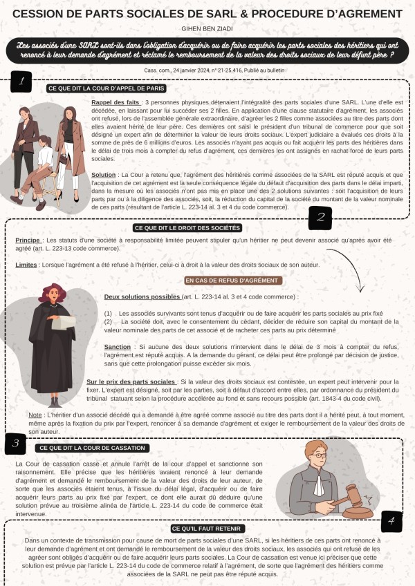 JURISCAP - CESSION DE PARTS SOCIALES DE SARL ET PROCÉDURE D'AGRÉMENT