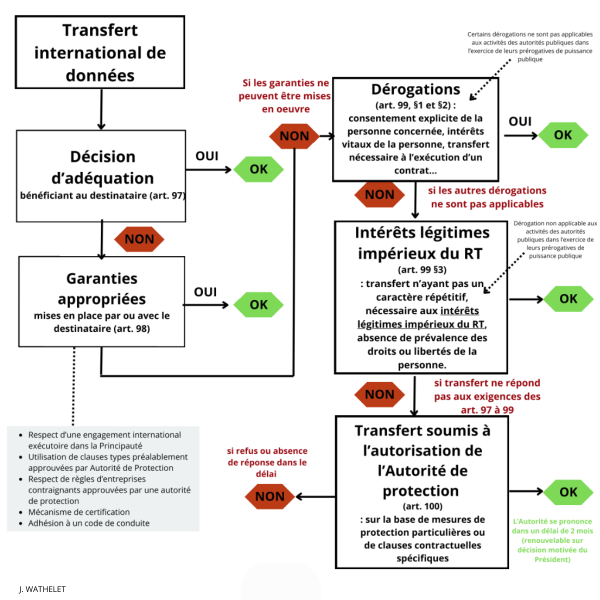 L’article 99 § 3 ajoute une dérogation exceptionnelle : un transfert ponctuel, non répétitif, portant sur un nombre limité de personnes, peut être autorisé s’il répond à un intérêt légitime impérieux du responsable, à condition d’informer l’autorité et la personne concernée et de documenter l’opération.
